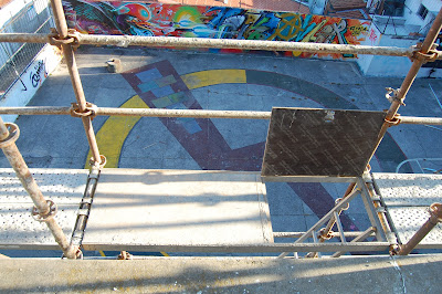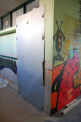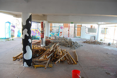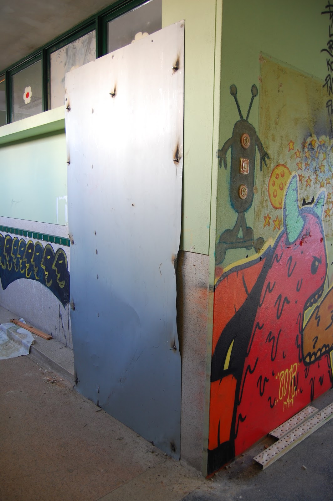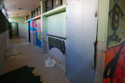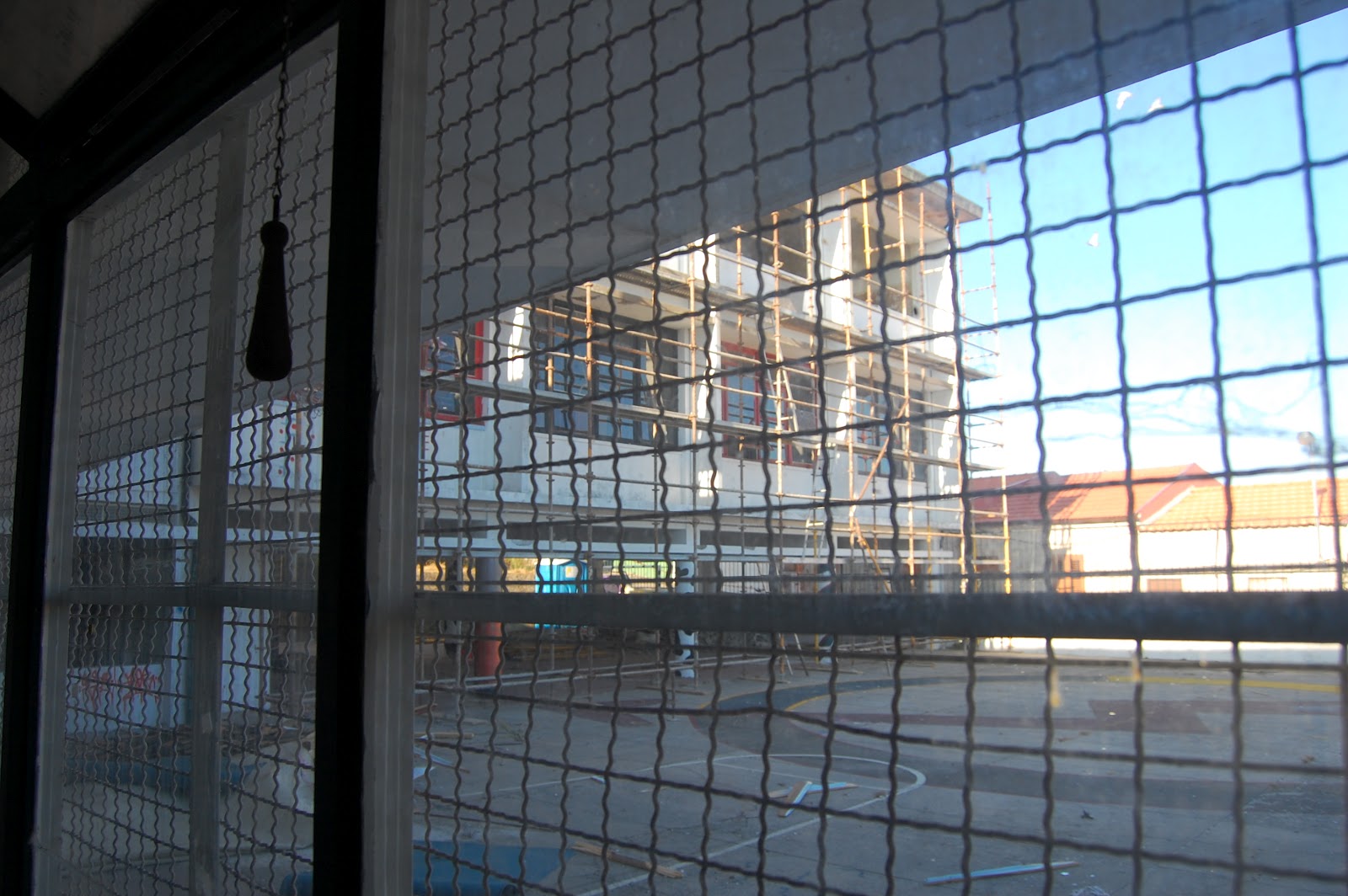 Depois de 4 meses de abandono e 2 dias de "trabalho" por parte de 3 funcionários e um encarregado da empresa de construção Nortejuvil munidos de picaretas e marretas, este é o estado da antiga Escola Primária do Alto da Fontinha, durante um ano devolvida à comunidade e transformada em Espaço Colectivo Autogestionado.